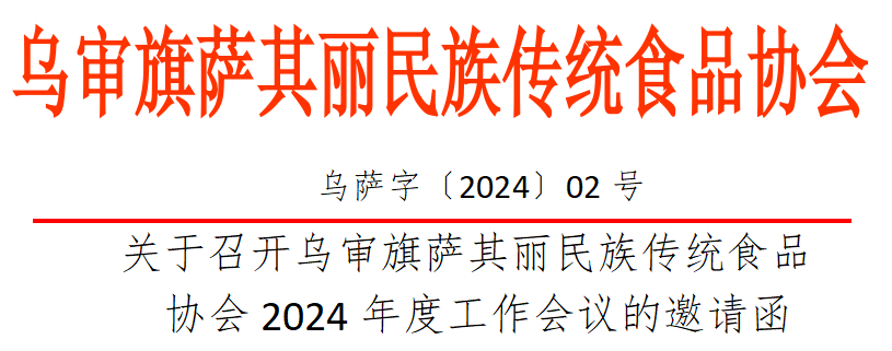关于召开乌审旗萨其丽民族传统食品 协会2024年度工作会议的邀请函